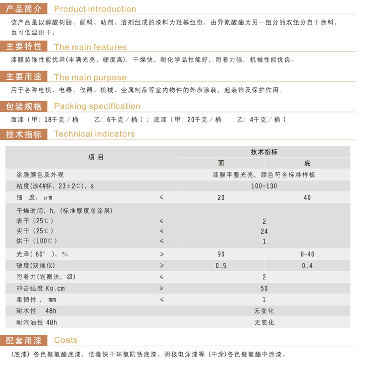 各色聚氨酯面漆(雙組份)